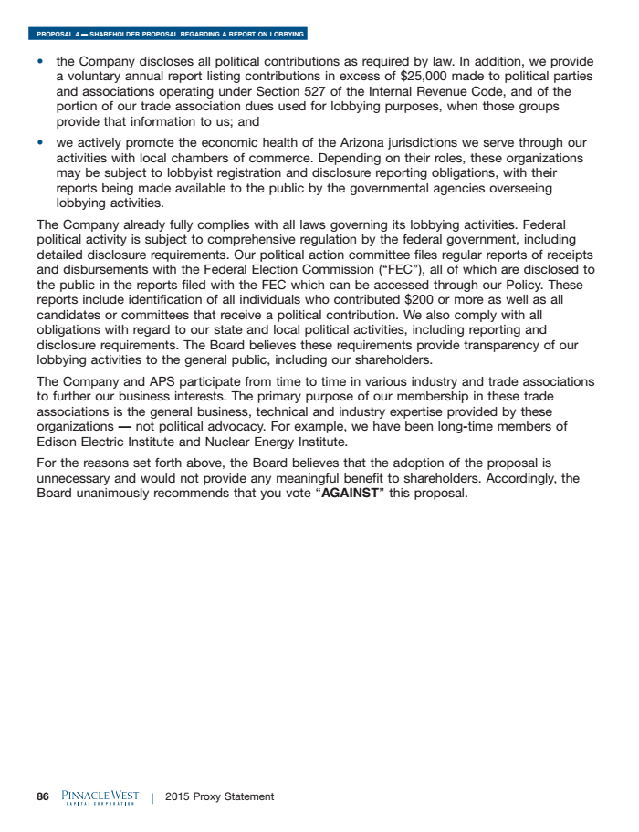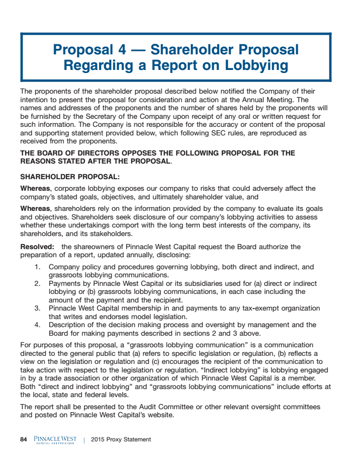 The question has been formally posed to Pinnacle West shareholders, as part of the publicly-traded company’s 2015 proxy statement, which is used to solicit shareholder input prior to the company’s annual meeting.