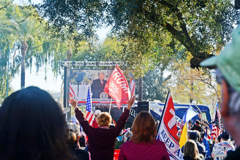 Trump supporters gather on the Arizona Senate lawn and watch the president speak in Washington, D.C., on Jan. 6, 2021. /Photo by Jerod MacDonald-Evoy/ Arizona
