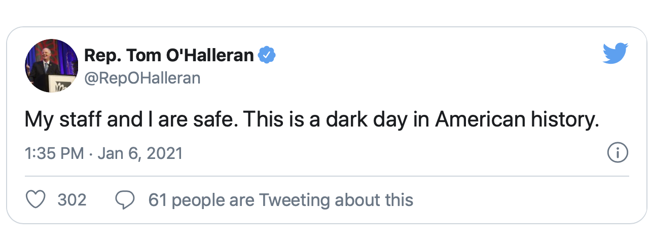 Arizona politicians on both sides of the aisle made their thoughts known Wednesday as riots unfolded at the U.S. Capitol in Washington, D.C., while the certification of the Electoral College vote was underway.