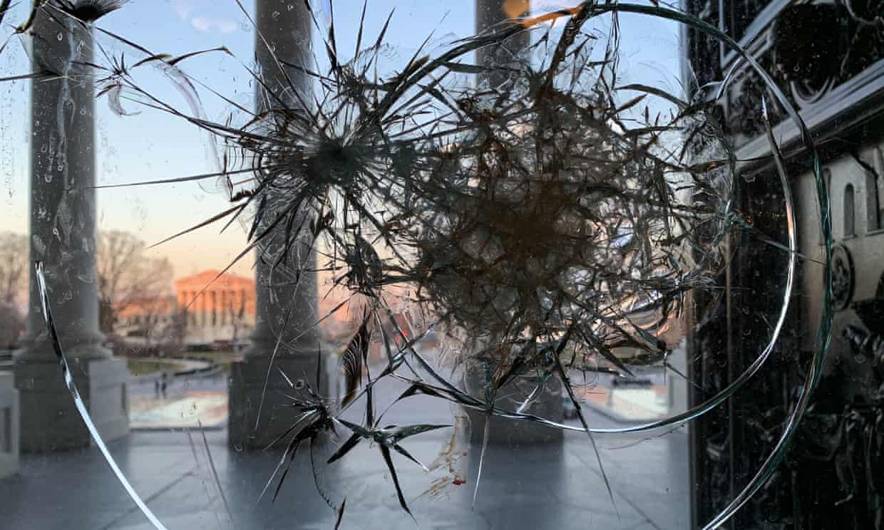 A window at the US Capitol building broken by supporters of President Trump / Photograph: Dmitry Kirsanov/TASS