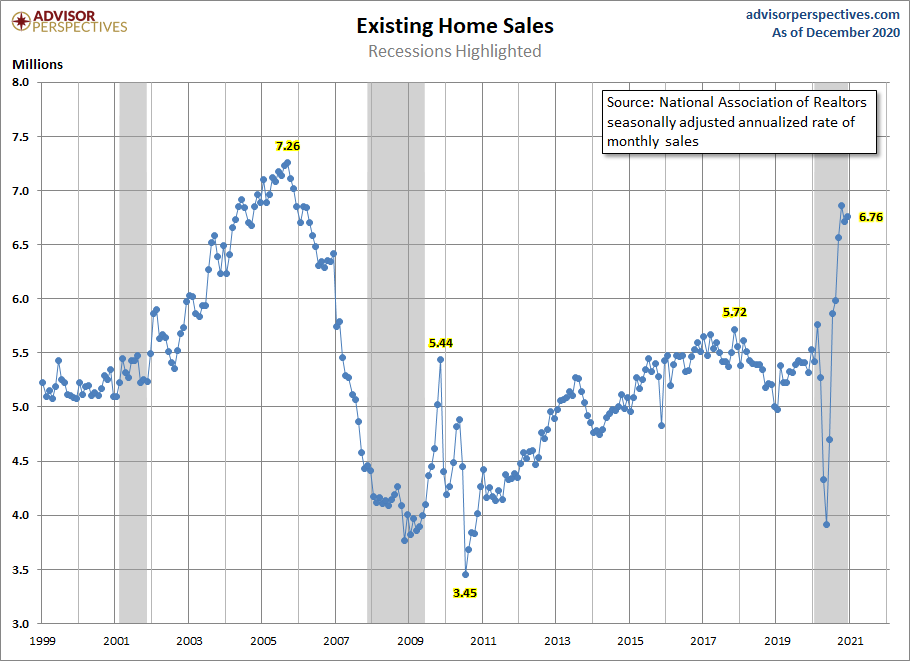 Today the National Association of Realtors reported existing home sales for the month of December were at 6,760,000, a beat of estimates. This also closed the books on 2020’s housing market as we finished out the year at 5,640,000 total existing-home sales — a 5.6% increase from the same month in 2019.