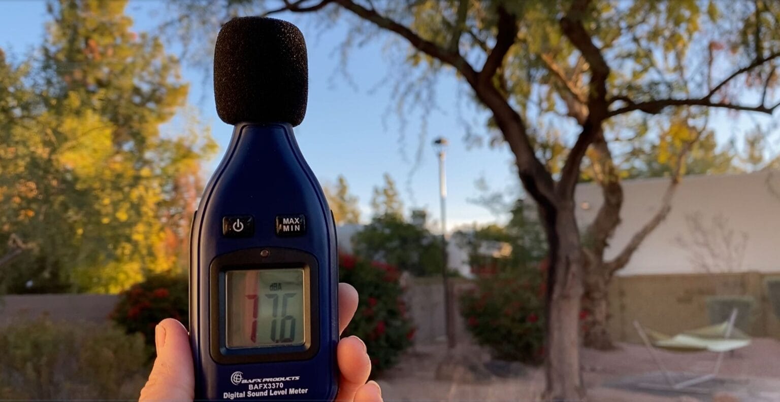 The noise level in Stacey Sell’s Circle G Ranches backyard near Loop 101 is well above the federal maximum of 67 decibels. | Photo courtesy of Stacey Sell