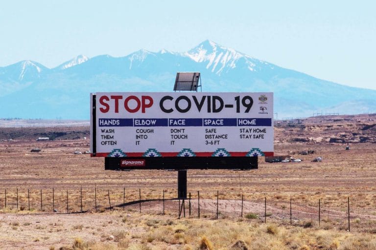 A sign warns against the coronavirus near the Navajo town of Tuba City, Arizona, on May 24, 2020. Mark Ralston/AFP/Getty Images By Stephanie Innes and Alison