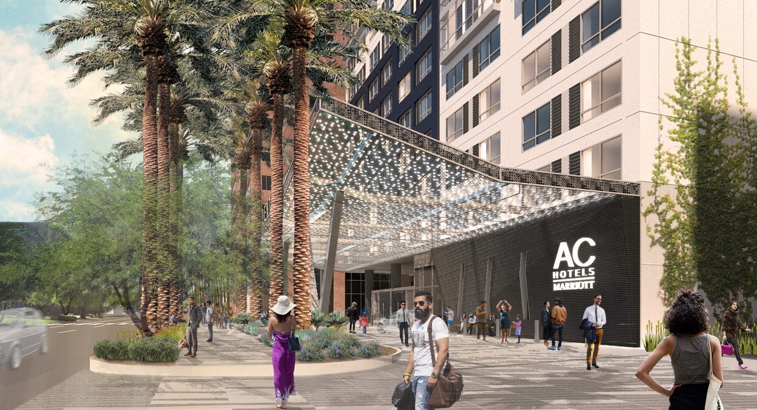 Arizona Center, a shopping, dining and entertainment destination in the heart of downtown Phoenix, prepares to welcome the new AC Hotel Phoenix Downtown, opening Feb. 18, 2021.