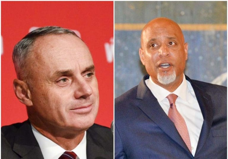 Concern of coronavirus variants causing issues during the season is palpable MLB Commissioner Rob Manfred (left) and Tony Clark, head of the Major League Baseball