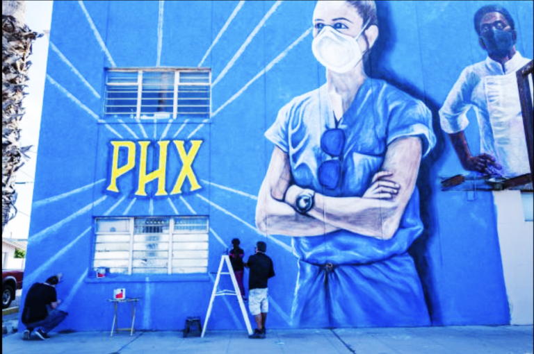 A new mural near downtown Phoenix pays tribute to workers on the front lines of the battle against the coronavirus, including a nurse who gained