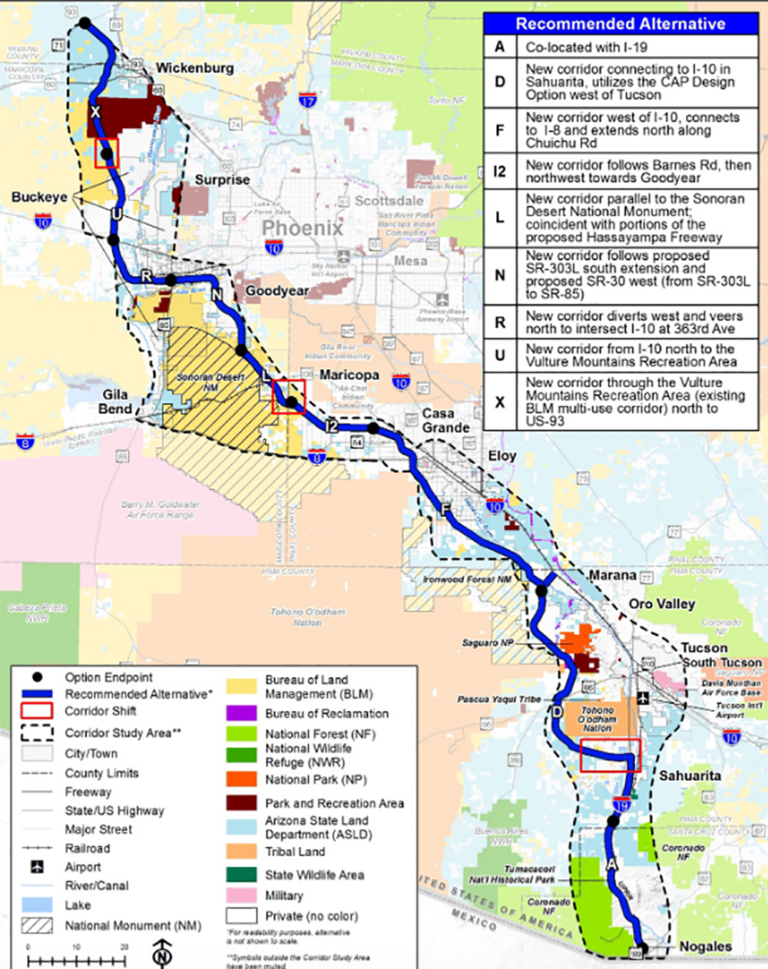 A map displays a corridor that ADOT is recommending for its Interstate 11 project. Pinal Central Staff U.S. Rep. Greg Stanton, D-Ariz., made the case