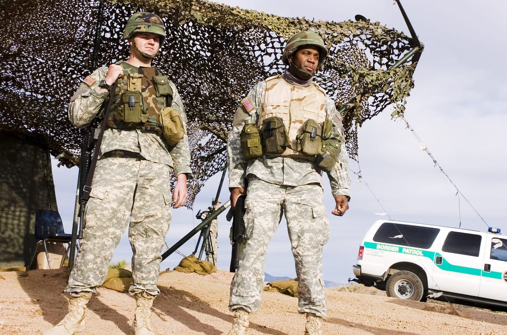 Army National Guard soldiers, members of an entry identification team, watch the U.S.-Mexico border near Nogales, January 2007. U.S. Army photo