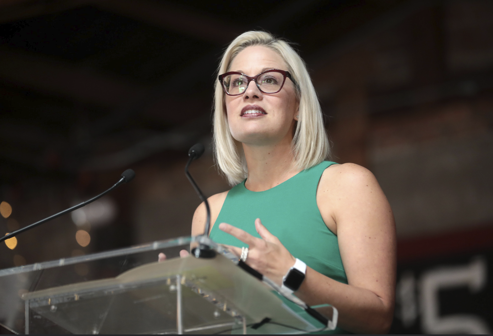U.S. Senator Kyrsten Sinema speaking with attendees at the 2019 Arizona Technology Innovation Summit at The Duce in Phoenix, Arizona. / Gage Sizemore/Flickr