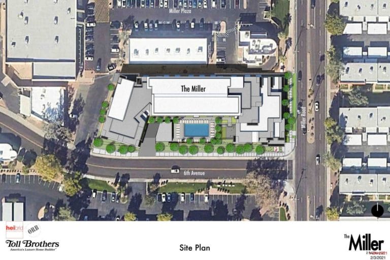 Site plan via Toll Brothers By Wayne Schutsky | Scottsdale Progress The developer behind a new apartment building planned near downtown Scottsdale is asking the