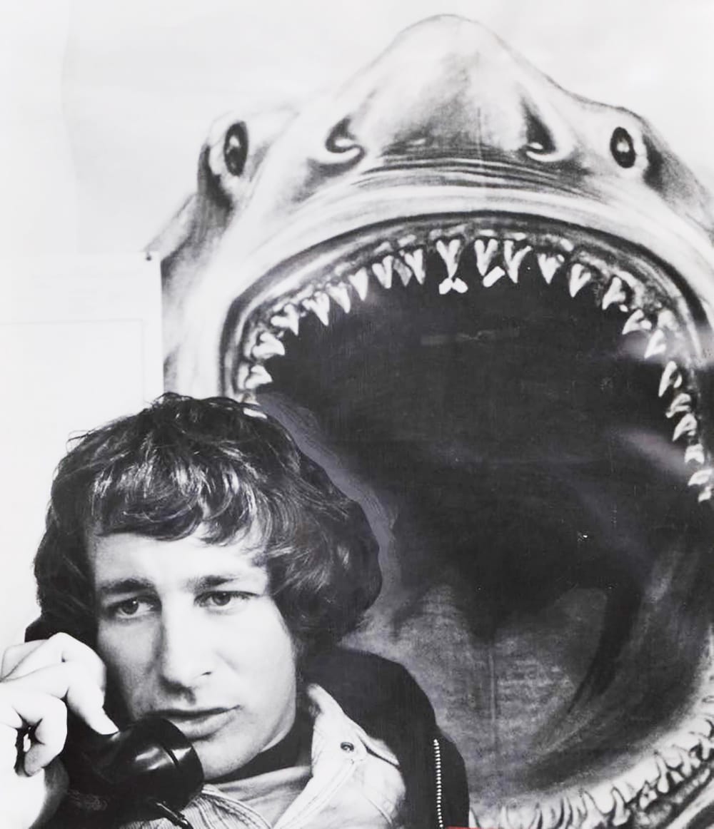 1974: Director Steven Spielberg is on the phone while filming “Jaws” on location in Martha’s Vineyard./Universal Pictures