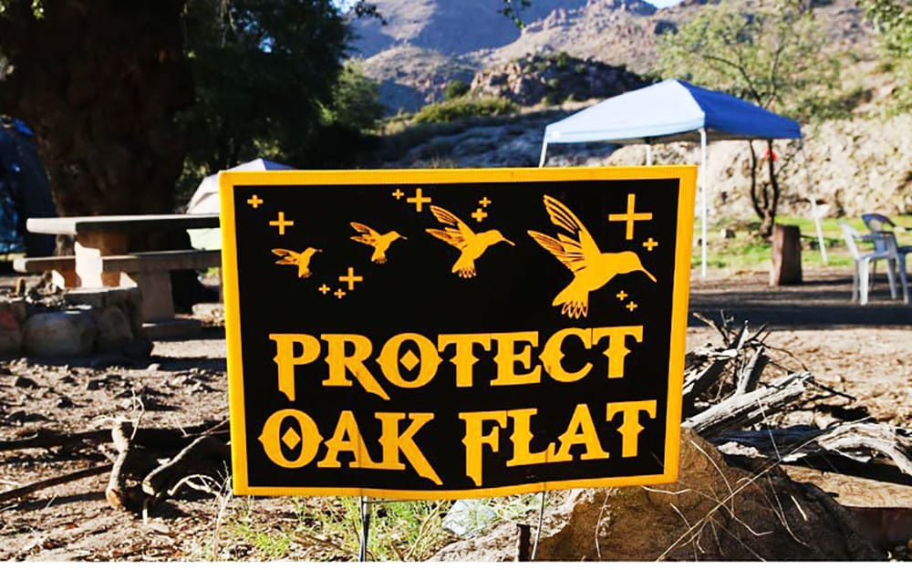 Planning on the Resolution Copper mine near Superior has been going on for years, as have protests like the one at this encampment in 2016. Opponents say the mine will destroy Oak Flat, an area sacred to the San Carlos Apache, and cause environmental harm. Supporters say the mine will produce jobs and much-needed copper. /File photo by Bri Cossavella/Cronkite News