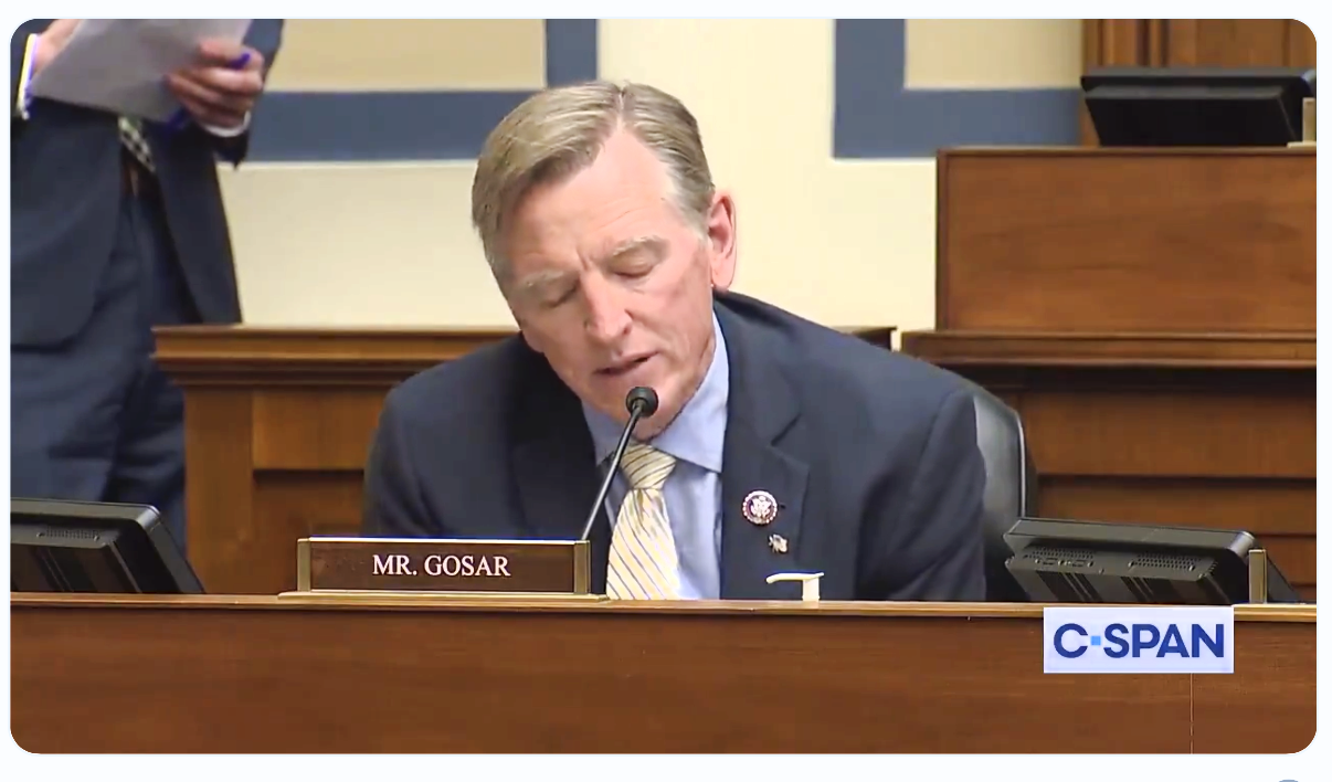 During a House hearing on the events of Jan. 6, Gosar chastised the FBI for having the nerve to ask the public’s help in tracking down what he called “peaceful patriots” and he demanded the security footage of what occurred before and during the riot.