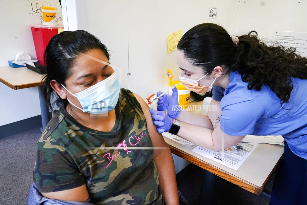 Medical assistant Andreea Marian, right, gives a COVID-19 vaccine to Gabina Morales at a clinic at PeaceHealth St. Joseph Medical Center Thursday, June 3, 2021, in Bellingham, Wash. Washington is the latest state to offer prizes to encourage people to get vaccinated against COVID-19, with Gov. Jay Inslee on Thursday announcing a series of giveaways during the month of June that includes lottery drawings totaling $2 million, college tuition assistance, airline tickets and game systems. /AP Photo/Elaine Thompson