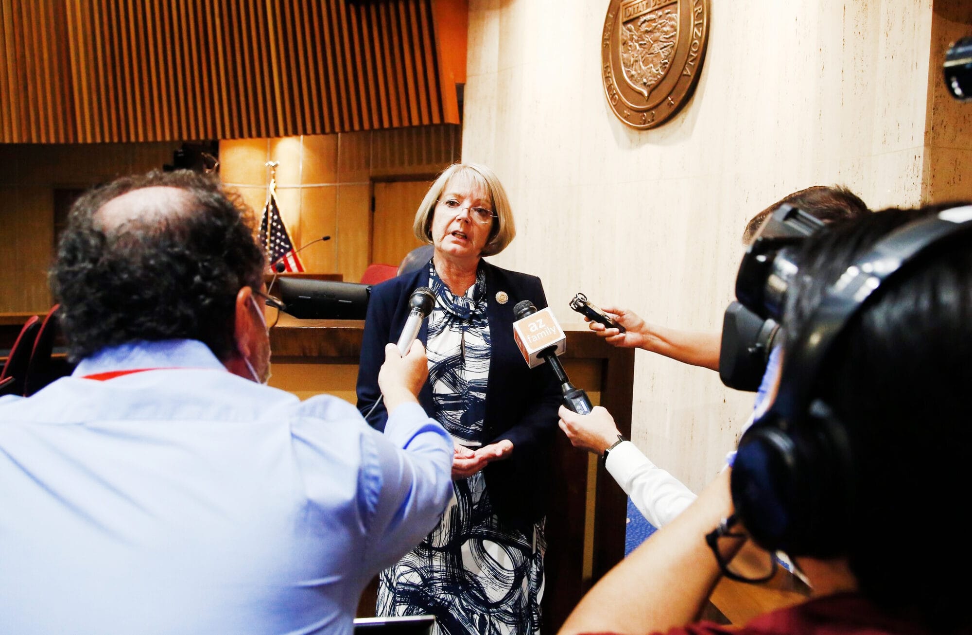 Karen Fann, president of the Arizona Senate last year. She said the purpose of the review was to address concerns of Trump voters that the election had been stolen. /Credit…Ross D. Franklin/Associated Press