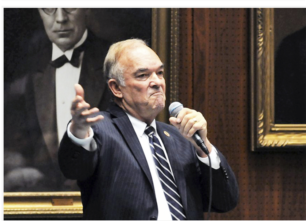 Former Rep. Don Shooter makes a point during a speech on the floor of the Arizona State House before the vote to expel him from the chamber on Feb. 1, 2018. /Photo by Howard Fischer/Capitol Media Services