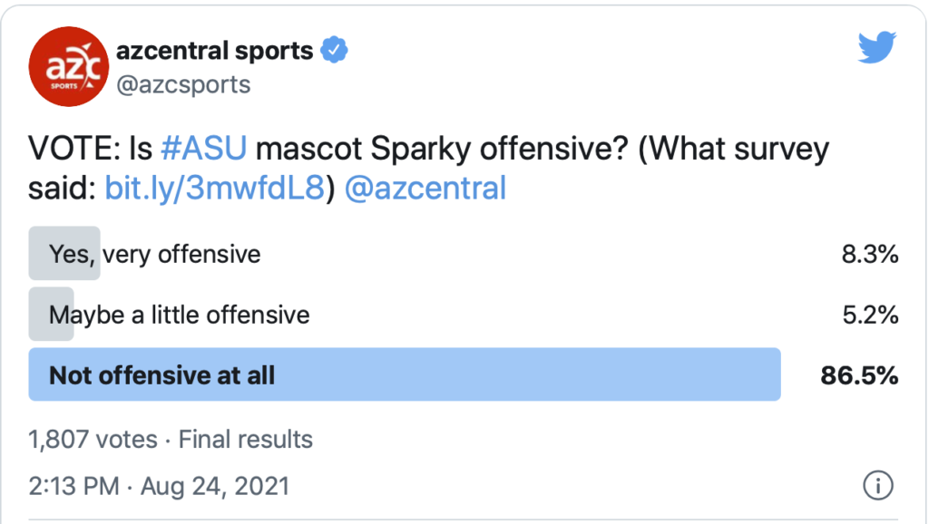 If they were so riled up about a simple survey, many are probably really not going to like a petition we stumbled across on change.org that calls for ASU to change its “Sun Devils” nickname.