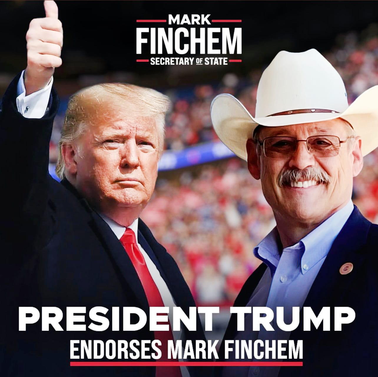 Donald Trump endorsed state Rep. Mark Finchem in the crowded Republican primary for secretary of state, throwing his support behind a candidate who one of Arizona’s most vocal proponents of the false allegations that the 2020 presidential election was rigged.