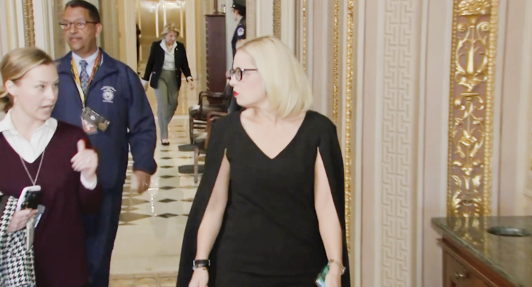 Sinema walks to her office/From video/Brenda Rivas/Cronkite News By Yvonne Wingett Sanchez | Arizona Republic Amid partisan brinksmanship over President Joe Biden’s budget reconciliation proposal,