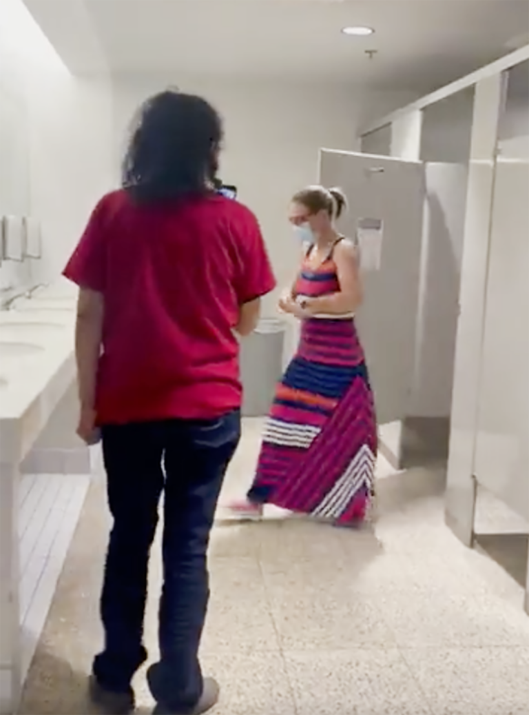 Protesters followed Sen. Sinema into the bathroom at Arizona State University to confront her on Build Back Better and immigration./Twitter Opinion: Is filming a politician