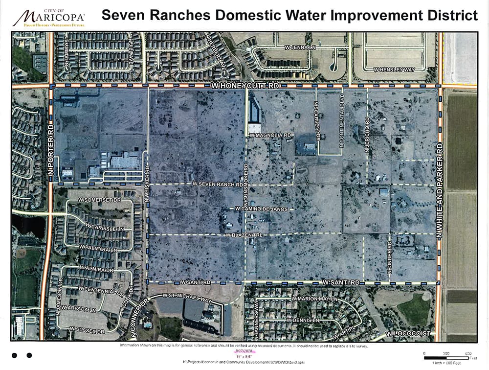 The Seven Ranches Domestic Water Improvement District would be taken over by the city if a draft Intergovernmental Agreement is finalized. The takeover by the city would improve service and safety and enhance property values. [City of Maricopa]
