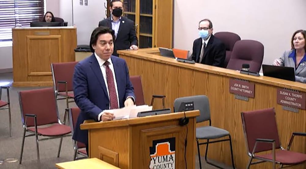 Brian Fernandez addresses the Yuma County Board of Supervisors on Nov. 22, 2021/Yuma County photo