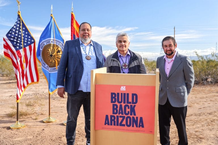Gila River Indian Community Governor Stephen Roe Lewis, Salt River Indian Community President Martin Harvier and Ak-Chin Indian Community Chairman Robert Miguel gathered on Dec.