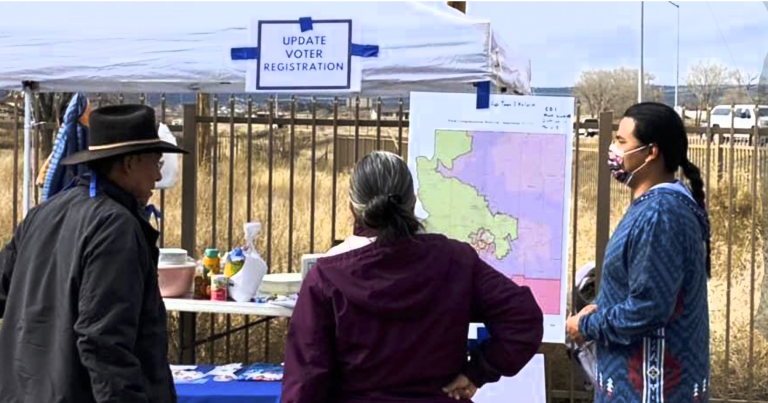 Volunteers with Northeast Arizona Native Democrats talk with potential Native voters in Window Rock, Arizona, about the congressional and legislative map redistricting. /Photo courtesy Northeast