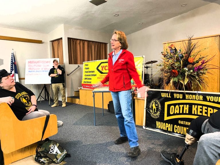 Sen. Wendy Rogers speaking to the Cottonwood Oathkeepers in March 2021./Photo via Twitter/@WendyRogersAZ Lawsuit alleges abuse and wrongful termination over COVID-19 case By Jerod McDonald-Evoy