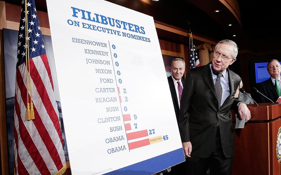 Senate Majority Leader Harry Reid at a press conference at the U.S. Capitol Nov. 21, 2013, in Washington, DC., after the U.S. Senate voted to change Senate rules on the filibusters for most presidential nominations with a simple majority vote.Win McNamee/Getty Images