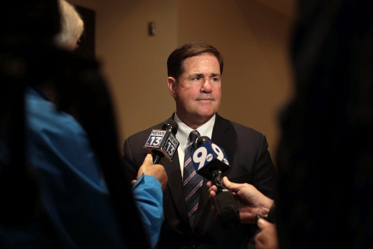 Gov. Doug Ducey speaking with the media at the 2022 Southern Arizona State of the State Address at the El Conquistador Tucson on Jan. 14,