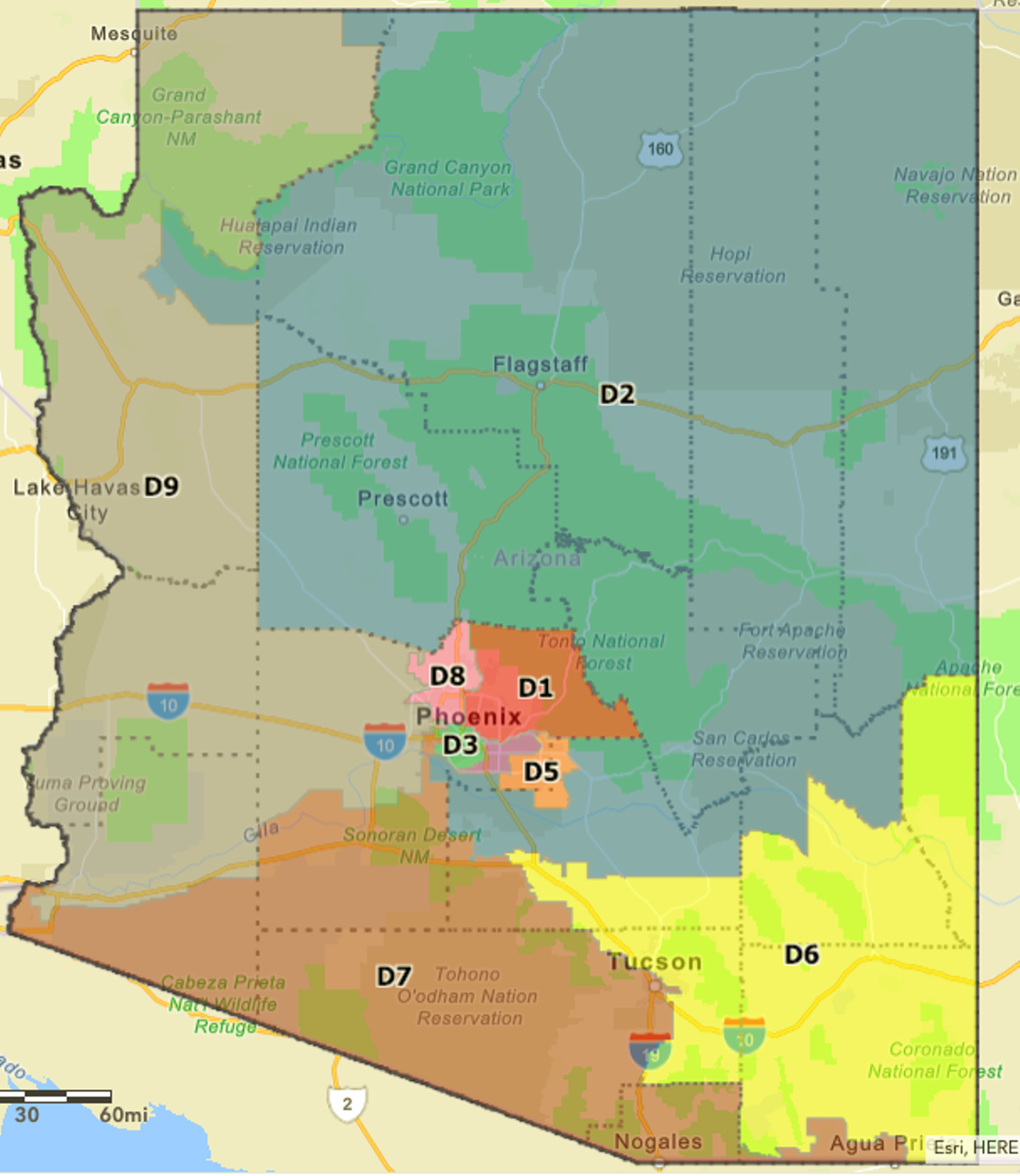 The approved map for Arizona’s U.S. House of Representatives delegation for the next 10 years./ Arizona Independent Redistricting Commission