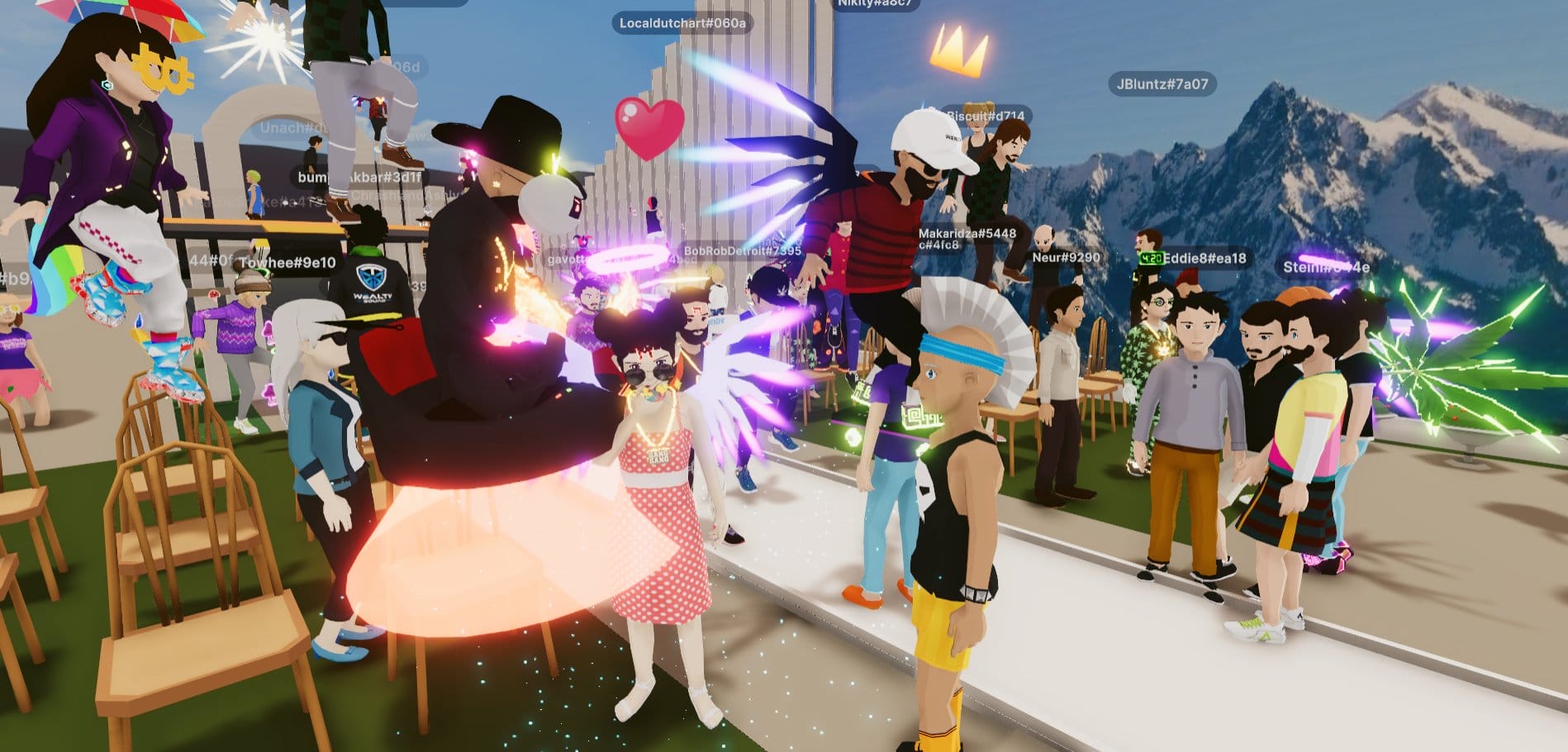 About 20 minutes into the event, all of the NFT presents given to the participants were quickly claimed. There was an avatar of Ryan left in the aisle. Candice’s avatar didn’t display for some guests, while others saw a change in the bride’s outfit and color.