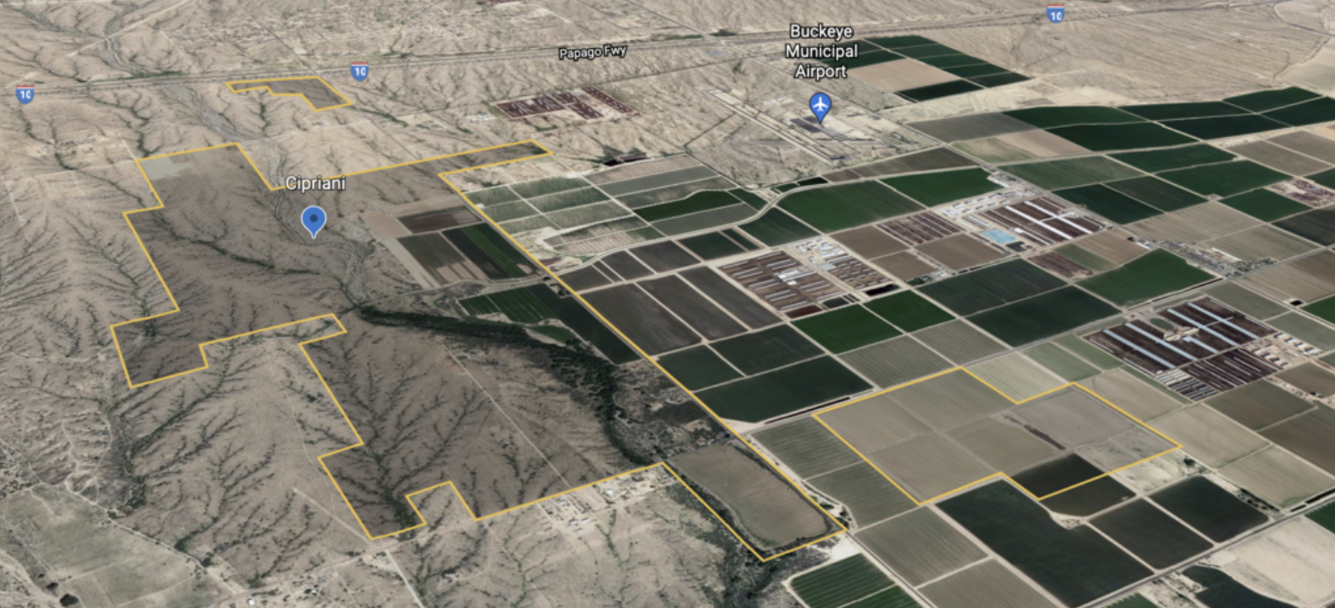 The giant property consists of about 2,000 acres located east of the Buckeye Municipal Airport and south of Interstate 10. Phoenix-based Arizona Land Consulting LLC will manage the development of a proposed industrial center, which could see tens of millions of square feet of space built for employment uses with some residential development.