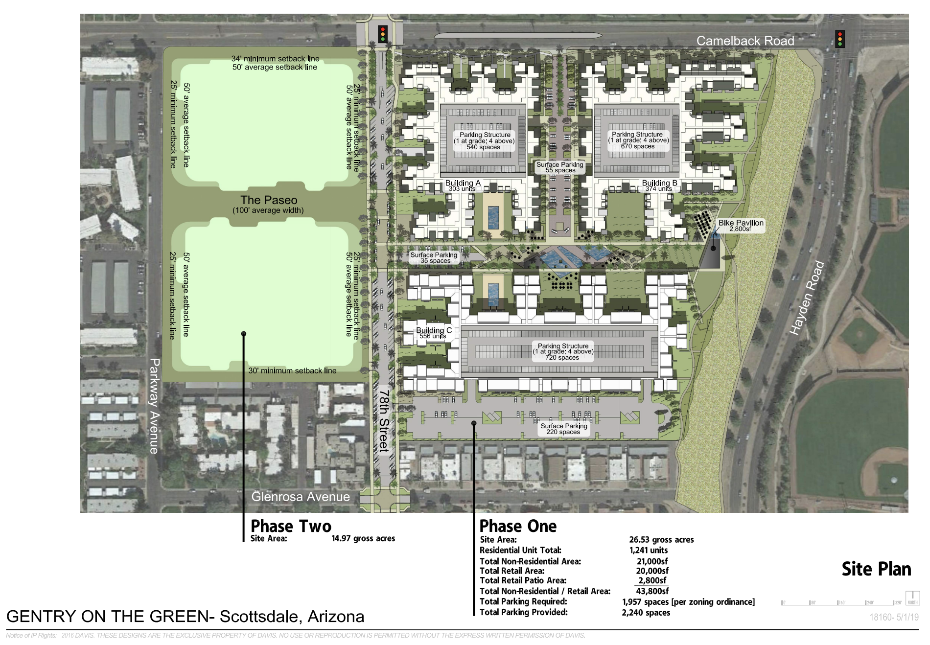 City staff have taken issue with some of the design elements for a proposed 582-unit apartment complex with 17,000 square feet of commercial space located near the intersection of Camelback and N. Hayden roads.