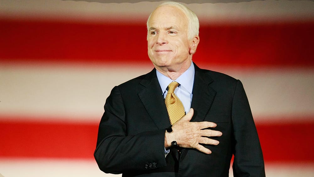 McCain gained a reputation around the world as one of Putin’s greatest antagonists, so much so that Russia officially sanctioned him in March 2014. A Kremlin spokesperson in 2017 said McCain was known for his “maniacal hatred towards our country.” And during McCain’s sixth and final Senate race in 2016, Russian trolls spread baseless conspiracy theories and insults on social media as part of a propaganda effort to smear him as a “traitor” or “RINO,” or Republican In Name Only.