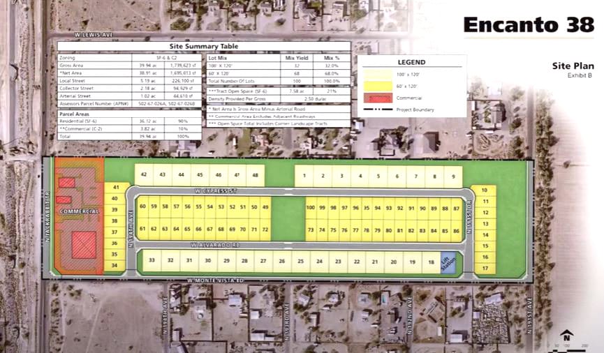 The Buckeye City Council handled both of those kinds of annexations at Tuesday’s meeting.After a relatively quick discussion and approval of annexing into the city and rezoning 2 acres that are within the planned Vista Bonita subdivision, the council moved on to a more complicated request.Jackencanto LLC is requesting annexation of two parcels of land for a multiuse project known as Encanto 38.