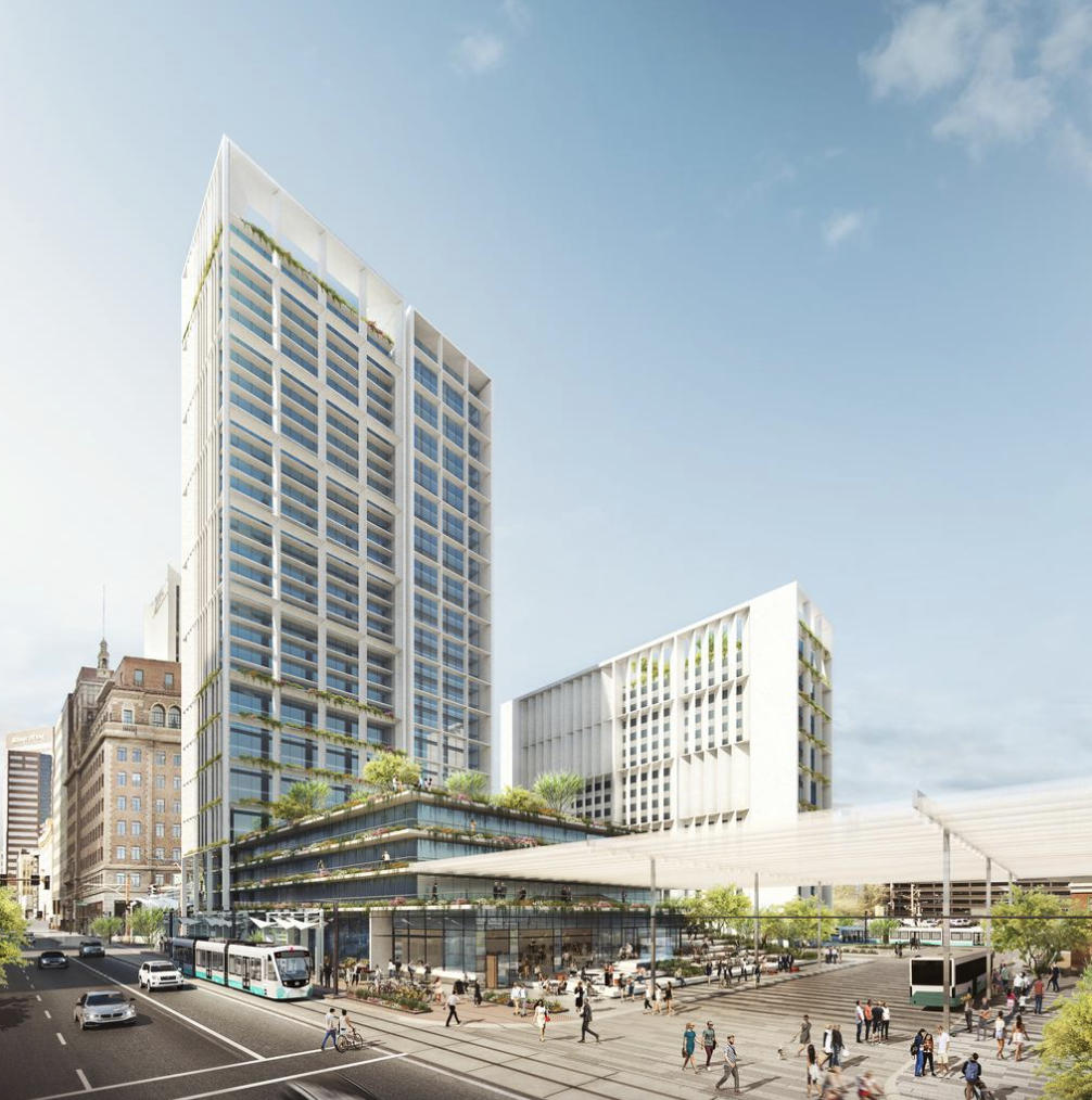 Houston-based Medistar, the developer for the Central Station project, will officially begin construction on the site on April 13, though work is already underway at the 2.6-acre site, which is bounded by First Avenue to the west, Central Avenue to the east, Polk Street to the north and Van Buren Street to the south.