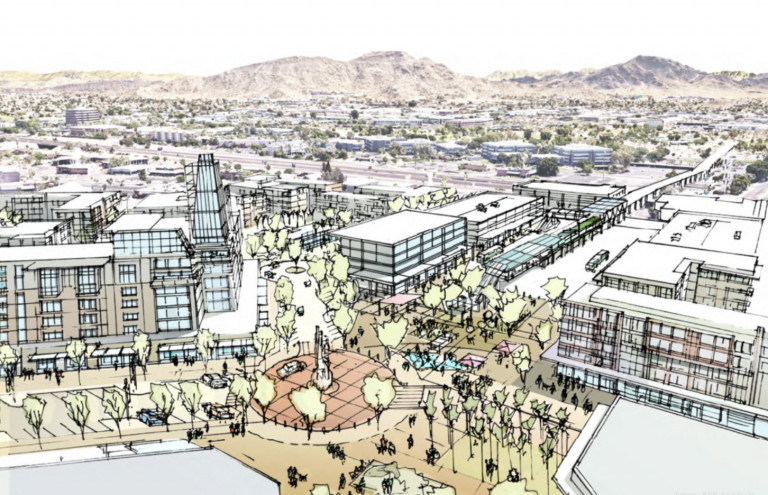 An artist’s rendering shows the plans for the Metrocenter redevelopment. (RSP ARCHITECTS) By Audrey Jensen | Phoenix Business Journal The city of Phoenix is proposing