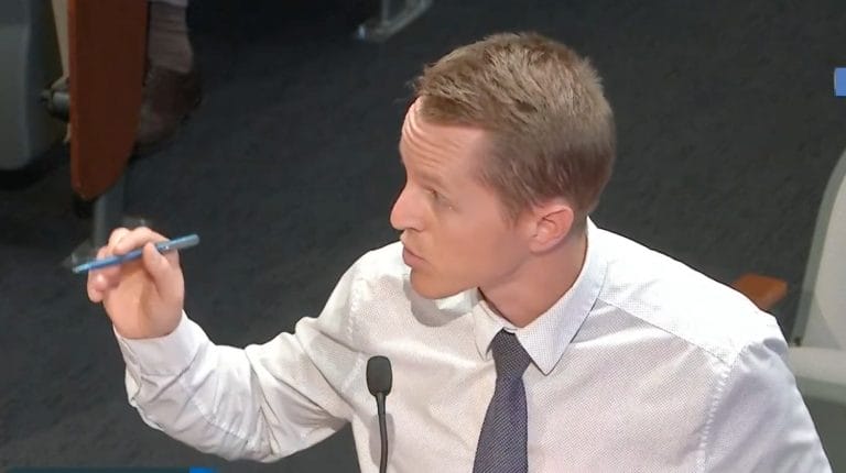 Kyle Barchello of RVi Planning and Landscape Architecture asks for a zoning change to develop a bungalow project at Peoria and Sarival avenues at the April 19 Surprise City Council meeting, but the council ultimately rejected it. (Via