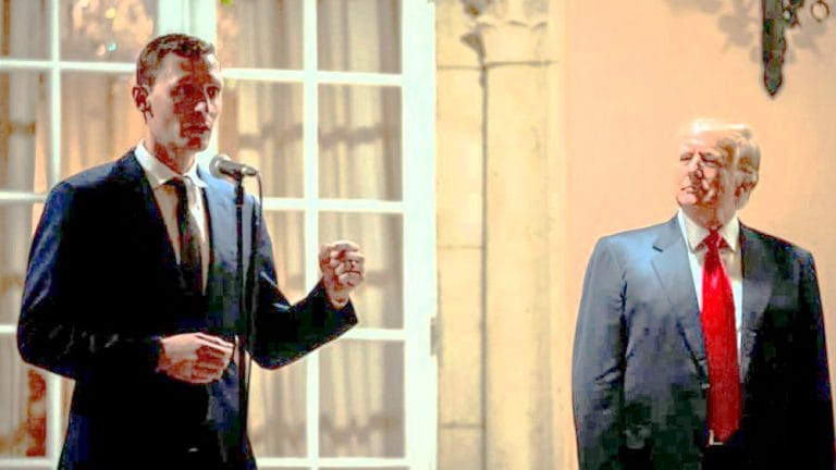 Blake Masters, candidate for U.S. senator from Arizona, appears with former President Donald Trump at Trump’s Mar-a-Lago resort in Florida in a photo posted to