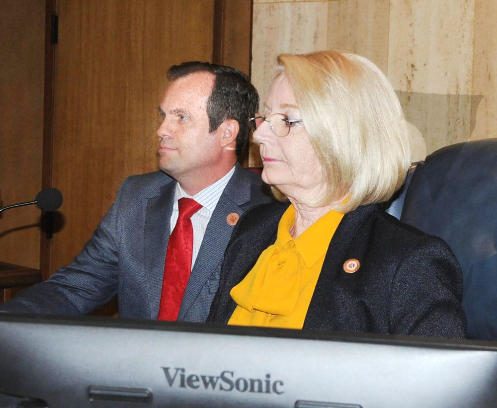 Senate President Karen Fann and Sen. Warren Petersen, who chairs the Judiciary Committee, prepare to hear the audit findings delivered Friday./Howard Fischer/Capitol Media Services