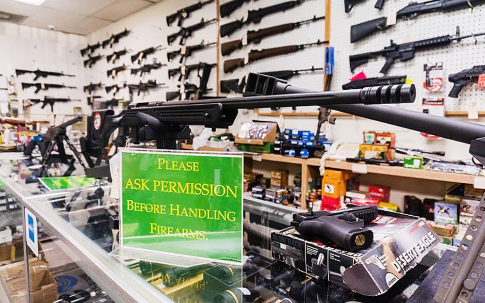 Firearms on display at Legendary Guns store in Phoenix in 2018, when there were 377,838 firearm background checks in Arizona. By 2020, that number had jumped to 665,458 and it has since remained well above previous years. Now, analysts say there could be another surge in buying in response to the recent spate of mass shootings in the U.S. /File photo by Daria Kadovik/Cronkite News