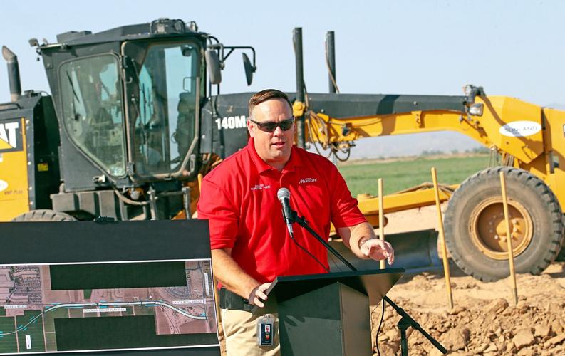 Maricopa Mayor Christian Price speaks Monday at the groundbreaking for the new east-west parkway connecting Maricopa with Casa Grande. (Photo by Howard Waggner courtesy of Pinal Central.)