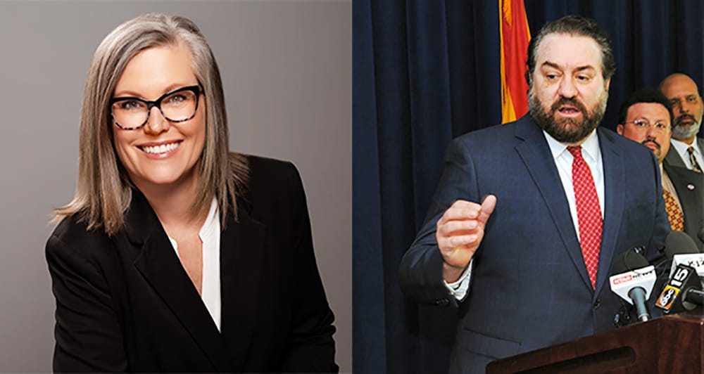 Secretary of State Katie Hobbs, left, and Arizona Attorney General Mark Brnovich