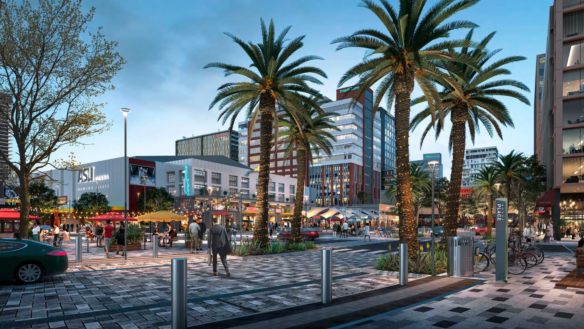 Catellus Development Corp. rendering of the planned Novus Place walkable district outside the ASU arena, which will host ASU and Coyotes hockey.