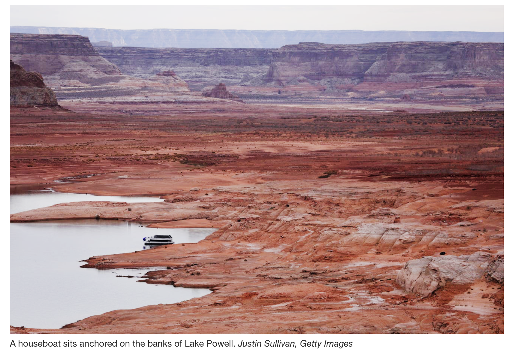 Lake Mead and Lake Powell are now so low that there is risk of falling into what is called “dead pool” – meaning reservoir levels are too low to pass water through the dam. If Lake Mead were to reach dead pool, for example, no water would flow downstream past Hoover Dam – cutting off Colorado River water to anyone in Arizona or California for all or parts of the year.