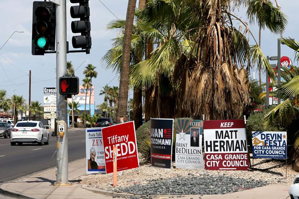 Candidate signs line the corners Wednesday July 13, 2022 at Florence Boulevard and Trekell Road./Oscar Perez/PinalCentral