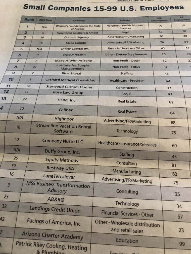 Congratulations to the winners of the 2022 Top Companies to Work for in Arizona! We surveyed companies in the state and these firms received the highest marks from their employees, an honor they should be very proud of!