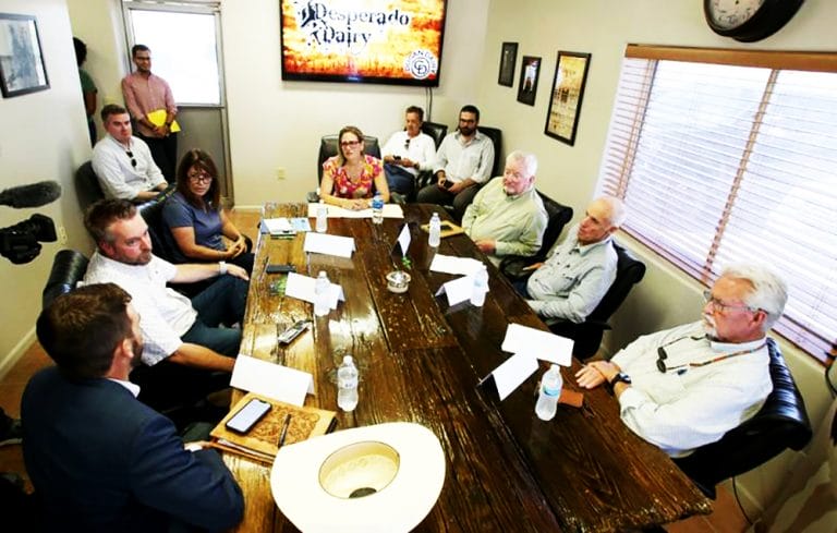 Sen. Kyrsten Sinema visits Desperado Dairy on Wednesday, Aug. 10, 2022, for an agricultural round table in Casa Grande. / Oscar Perez/PinalCentral By JODIE NEWELL